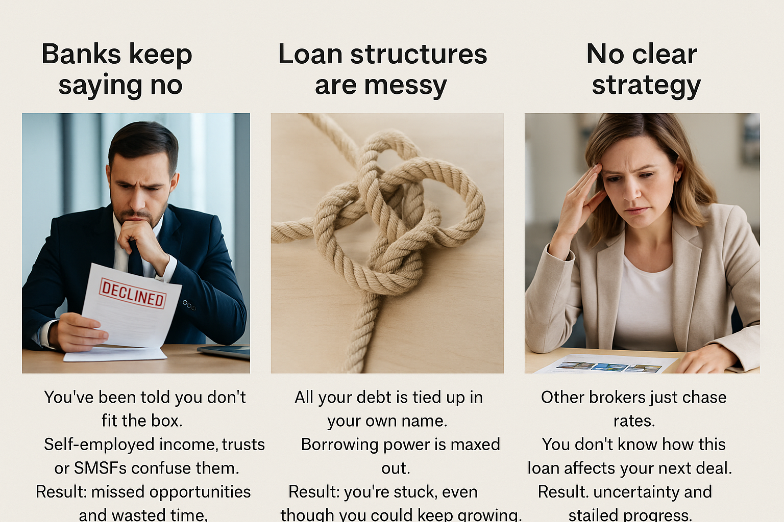 That is exactly why clients come to me. I specialise in complex lending including, self-employed income, trusts and SMSFs. My process reduces the risk of decline by presenting your application correctly from the start.